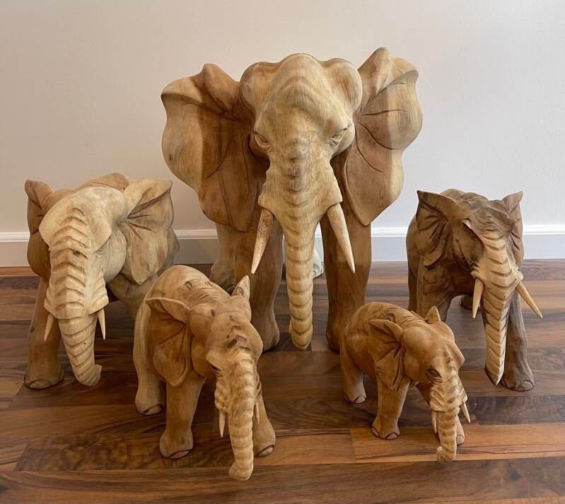 Suar-Houten olifanten in 5 maten!