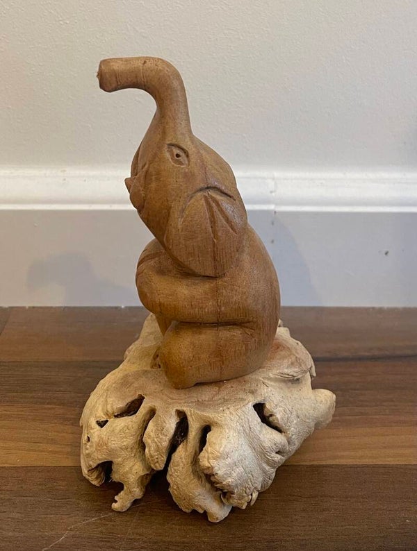 Houten olifant op parasiet - KLEIN